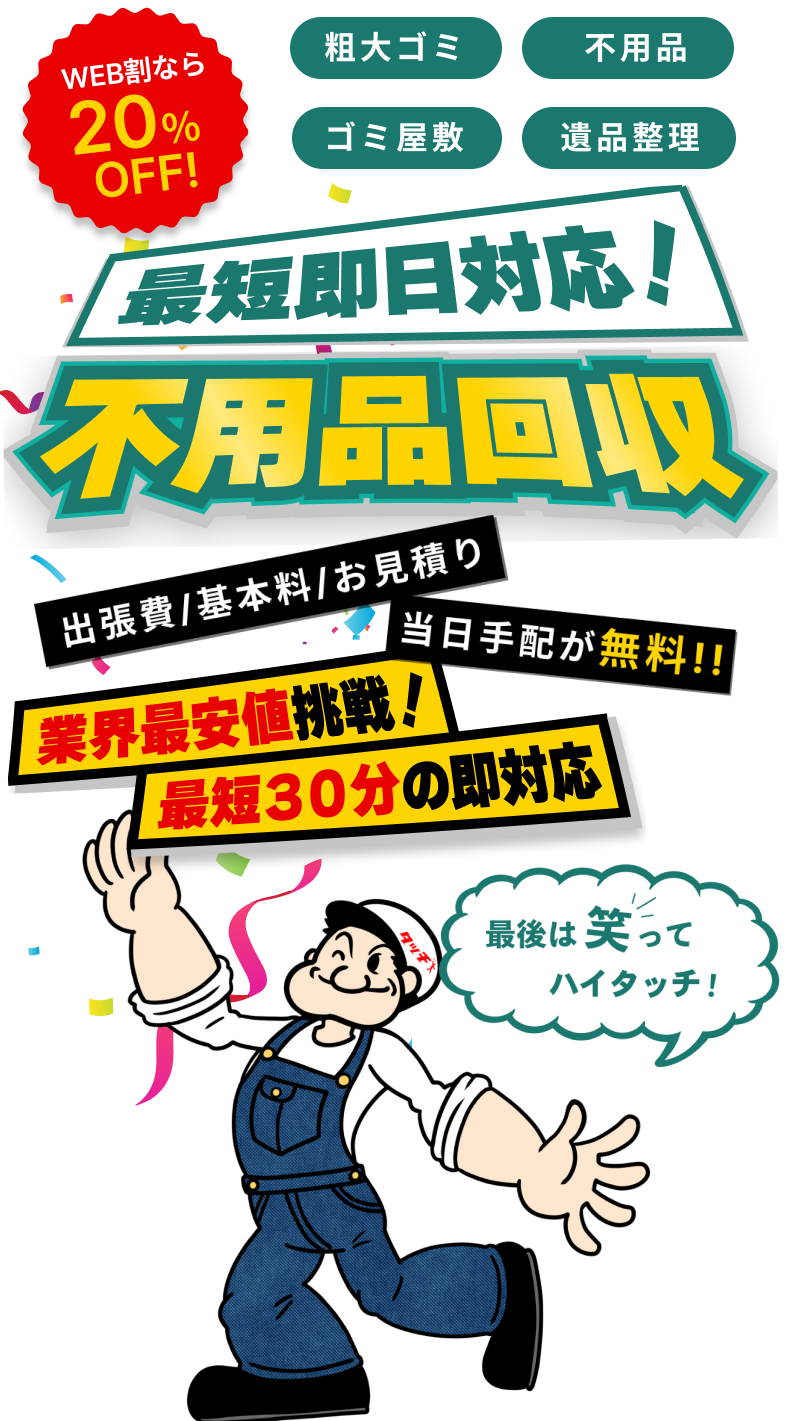 - 不用品回収タッチでは9-18時の場合、当日見積りが可能な場合がございます。